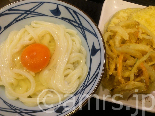 食べた物:釜玉うどん(並) 330円、野菜かき揚げ 130円、さつまいも天 80円