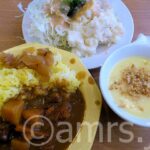 カレー、サラダ、スープを取ってきまして、モグモグ