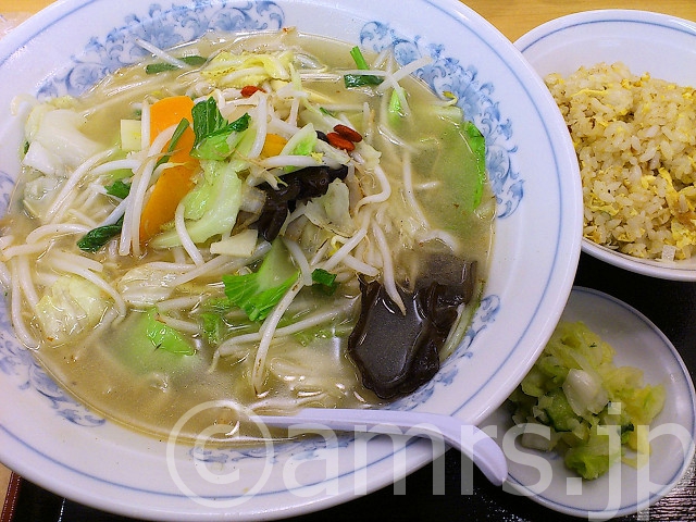 タンメン、全ての麺類に付けられる半チャーハンをプラスして注文