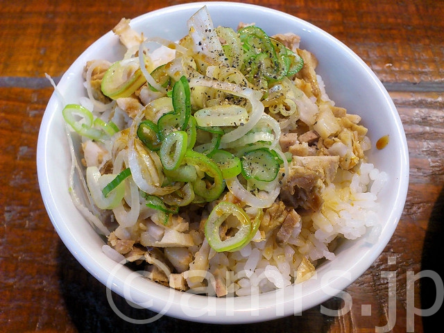 ご飯の上に油そばと同じチャーシューの切れ端とネギが乗る丼