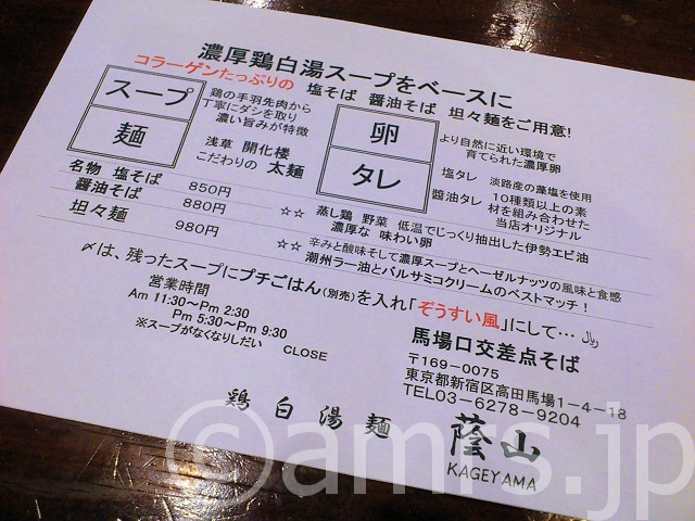 営業時間:11:30-15:30、17:30-21:30(スープ無くなり次第終了)
