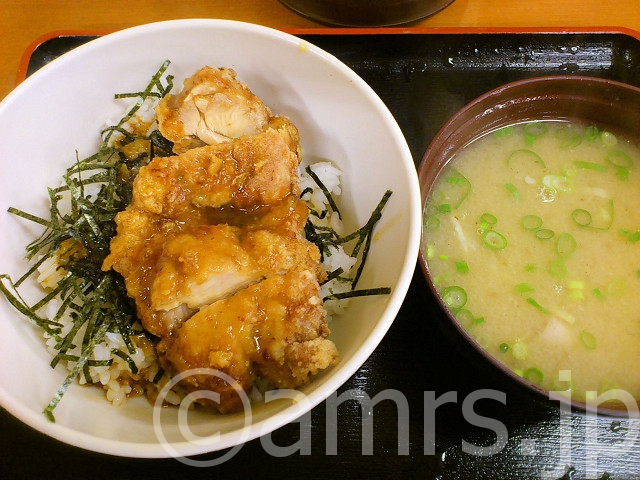【閉店】若鶏竜田丼豚汁付@Sガスト X Bluesky Facebook はてブ LINE2012.11.28食閉店丼(どんもの)から揚げ5点時間がないのでサクッと、Sガストへ何にしようか考えたけど、丼物でサクッと・・・と思い、若鶏竜田丼豚汁付の食券を購入待つ事5分 評価は、5点若鶏竜田揚げは、意外にもボリュームあり サクサクな歯ごたえが良い感じでも、タレがちょい甘め増しかなと・・・豚汁は、まあまあって感じですかね食べた物:若鶏竜田丼豚汁付 450円