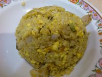 天津飯+チャーハンを考えてはいたのですが、こちらに傾き