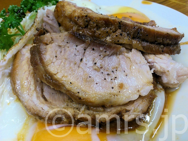 チャーシューの味の醤油濃さを黄身の味が和らげてくれて、マイルドで別の味付け要らず