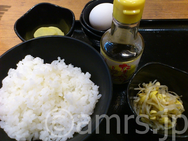 食べた物:こだわりの玉子かけご飯 230円、豚汁変更 +100円