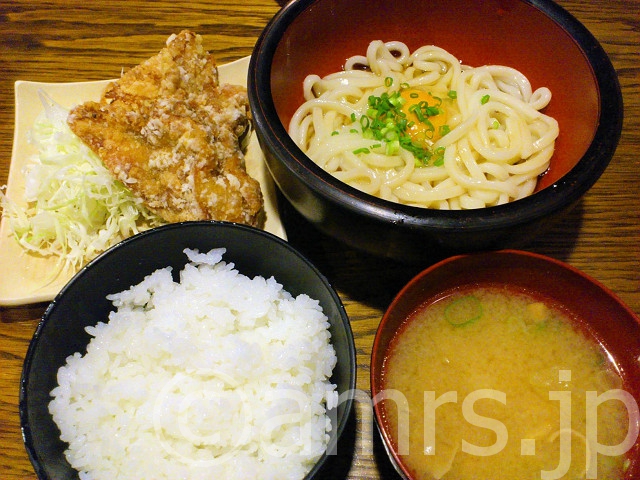 と言うことで釜玉うどんを一気に食べて、唐揚げとごはんを食べる。