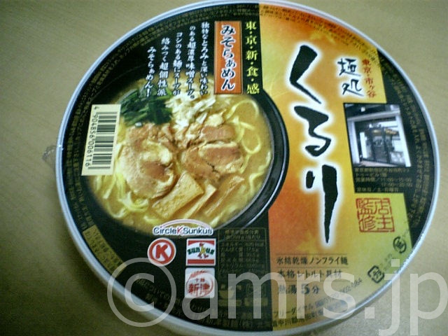 麺処くるり by カップラーメン X Bluesky Facebook はてブ LINE2006.11.12食ラーメンカップ麺味噌ラーメン地元のサークルKサンクスへ立ち寄ったところ 市ヶ谷くるりのカップラーメン発見!!そりゃもちろん 速攻で購入(笑)そして即、作りましたよ 評価は、3点本家と比べてみるのもいかがな物かと思ったのですが とにかく全く持って別物・・・この麺ってとても家系なんですけど・・・ スープもピリ辛ですし・・・ 本家の甘さがない・・・とりあえず別物として食べると良いかもね