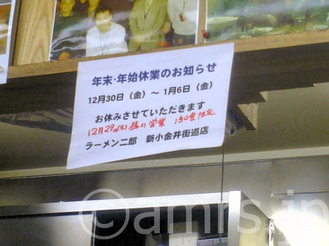 ラーメン二郎 『ニンニク入れますか。』掲示板の年始年末営業情報板を見ながら