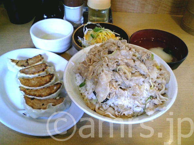 Aセット=スタ丼、餃子5個、サラダ、みそ汁