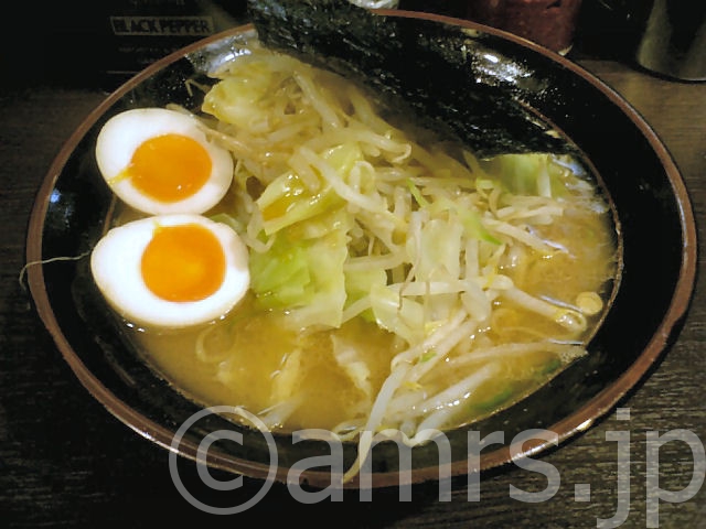 具は、キャベツ、もやし、煮玉子、チャーシュー、海苔、ほうれん草
