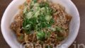 まいど豆腐が乗っている事により、ソースを掛けつつ醤油を掛ける。