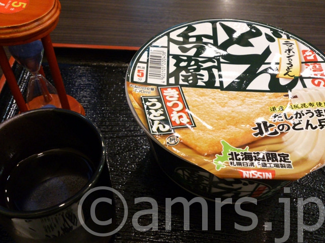 ここで食べられるどん兵衛シリーズが陳列されております。