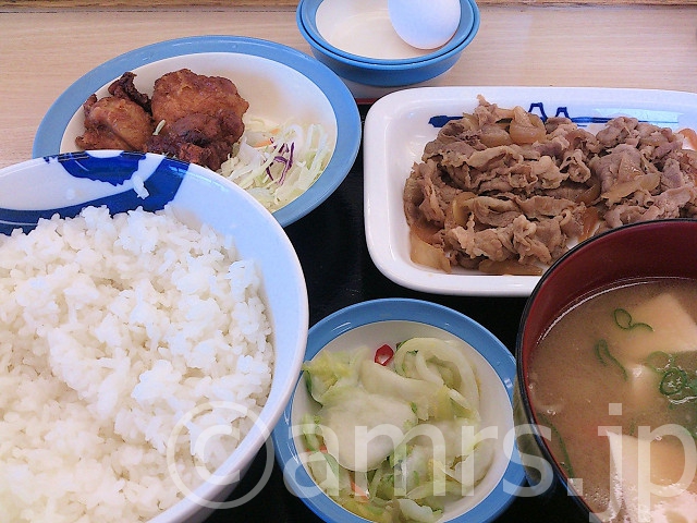 食べた物:牛皿唐揚げ定食 500円,豚汁セット 220円