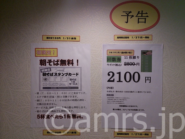 オープンキャンペーン時にやっていた「朝そば 100円」が帰ってきてた(笑)