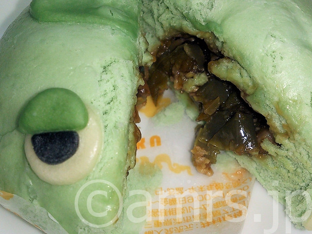 まずは、ガチャピンまん(チンジャオロースまん)から