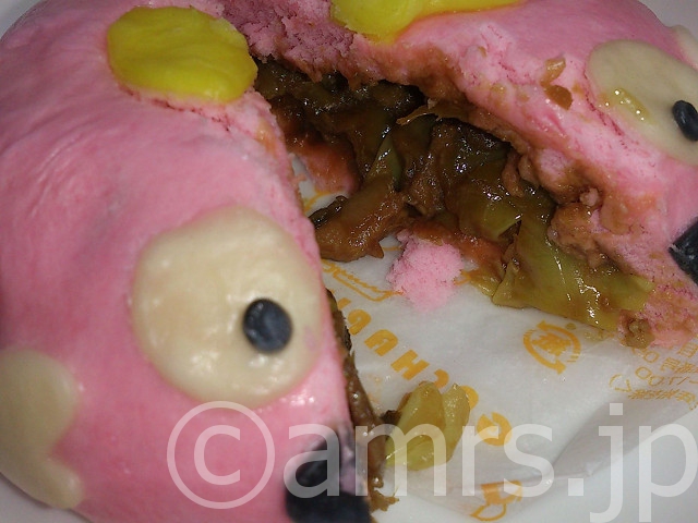 食べた物:ガチャピンまん(チンジャオロースまん) 180円、ムックまん(ホイコーローまん) 180円