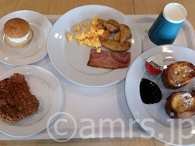 食べた物:モーニングプレート 104円、厚切りフレンチトースト 419円、セムラ 209円、フライドチキン 105円、ドリンクバー 158円