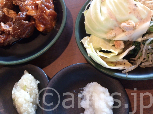サラダ&肉+刻みタマネギタレと大根おろし