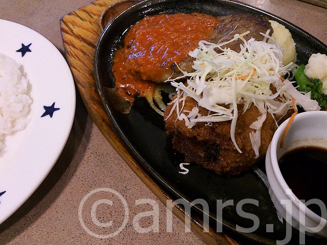 食べた物:ハンバーグ トマトガーリックソース&十勝ほくほくコロッケ@ステーキのどん 730円