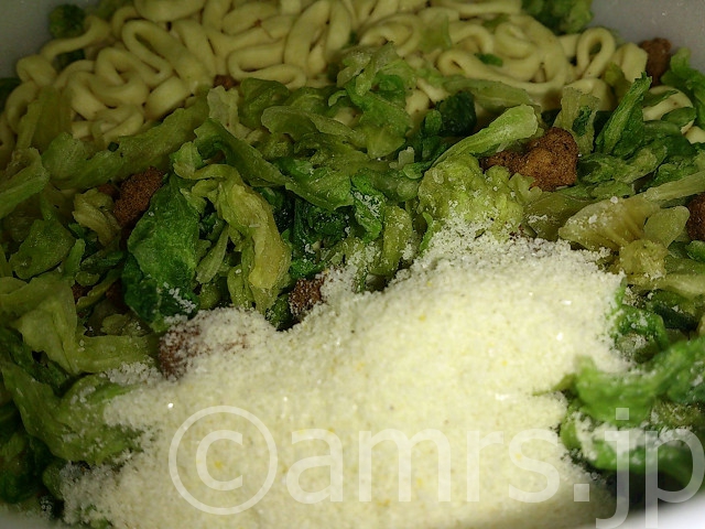 先に粉末スープを入れます。