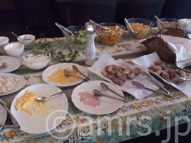 野菜やらフルーツ、パン、ハム、ソーセージ、スクランブルエッグなどなど
