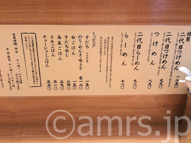 二代目つけめんに関して言えば、10円アップ。