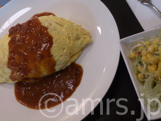 食べた物:オムライス(デミトマトソース) 670円、大盛 +100円、サラダ +50円