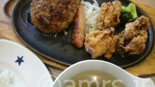 食日替わりランチメニュー(ハンバーグ〈100g〉&ソーセージ&チキン唐揚げ)@ステーキのどん