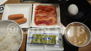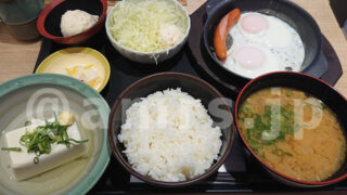 食ソーセージエッグ定食(冷奴)・豚汁・ポテトサラダ@松乃家・松のや